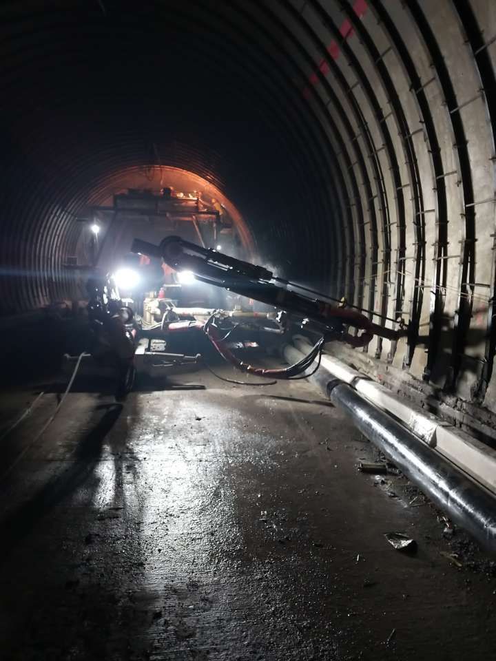 自主研發(fā)高效360°隧道二襯環(huán)切拆換設(shè)備施工現(xiàn)場(chǎng)